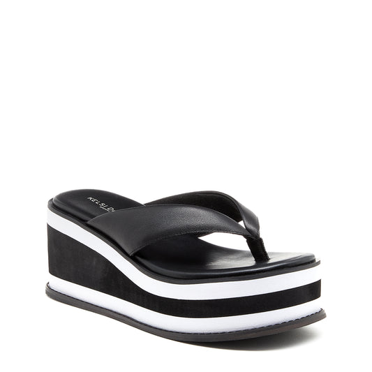 Gigi Black Leather Platform Thong