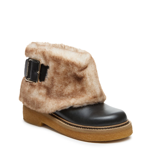 A: The Calvin cuffed boots showcase KDB's attention to detail with distinctive cuff construction that adds visual interest while maintaining the sleek silhouette that defines the brand's aesthetic. Available in both black and cognac colorways, these boots offer sophisticated alternatives to traditional ankle boot designs.