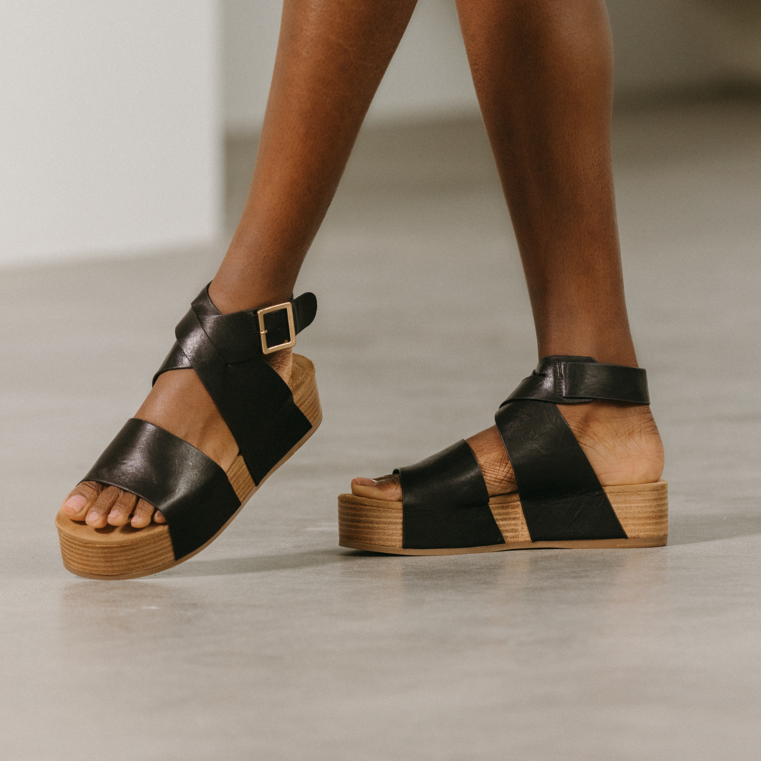 Dunes Black Ankle Platform Sandals